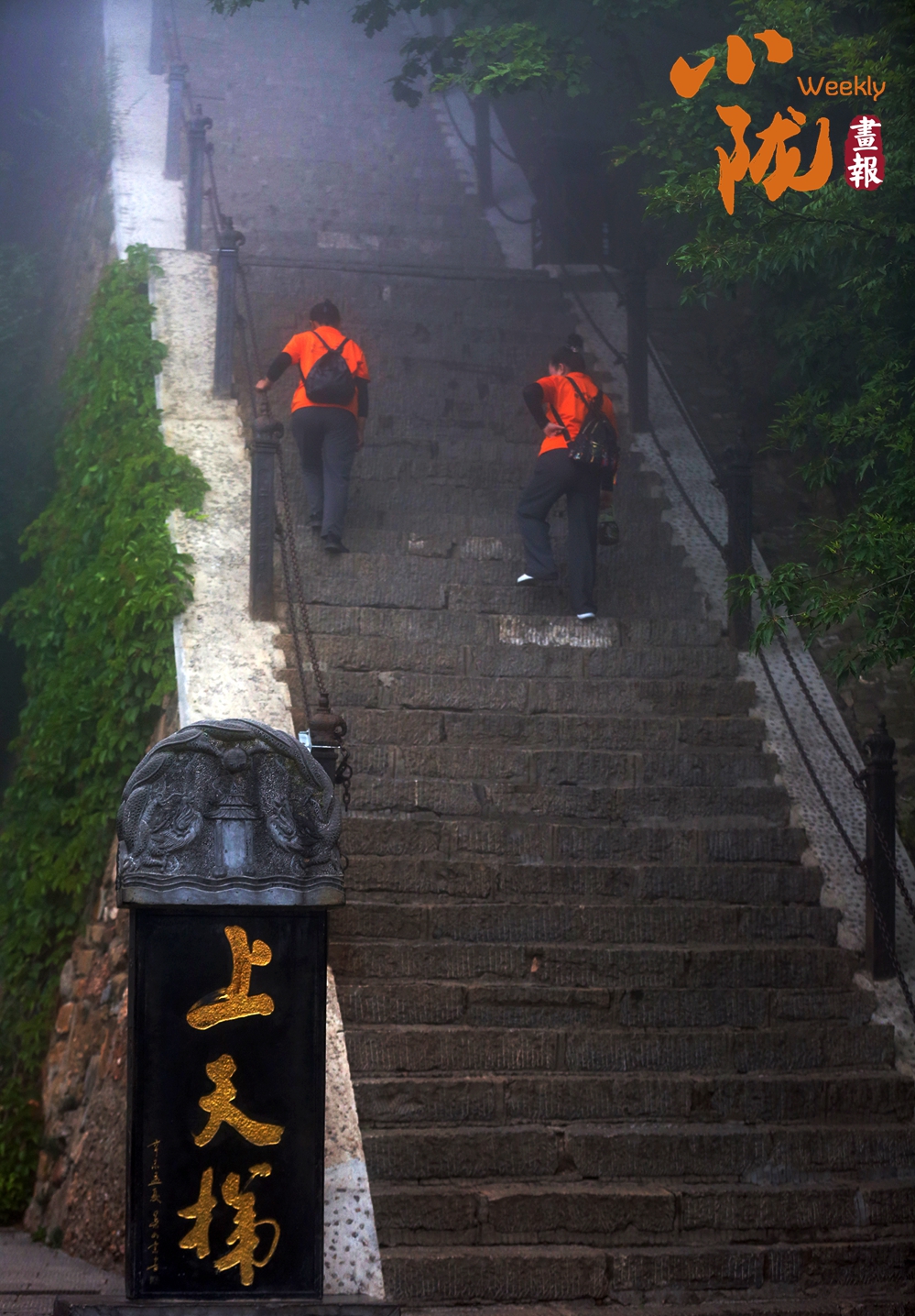 云霧繚繞,山水與寺廟隱現(xiàn),營(yíng)造出神秘且令人向往的視覺效果。站在半山腰,背靠懸崖,深邃不可見底,不禁生出“山登絕頂我為峰”的豪情。然而,世間萬(wàn)物,瞬息萬(wàn)變,是否成為峰巔之巔又何妨?