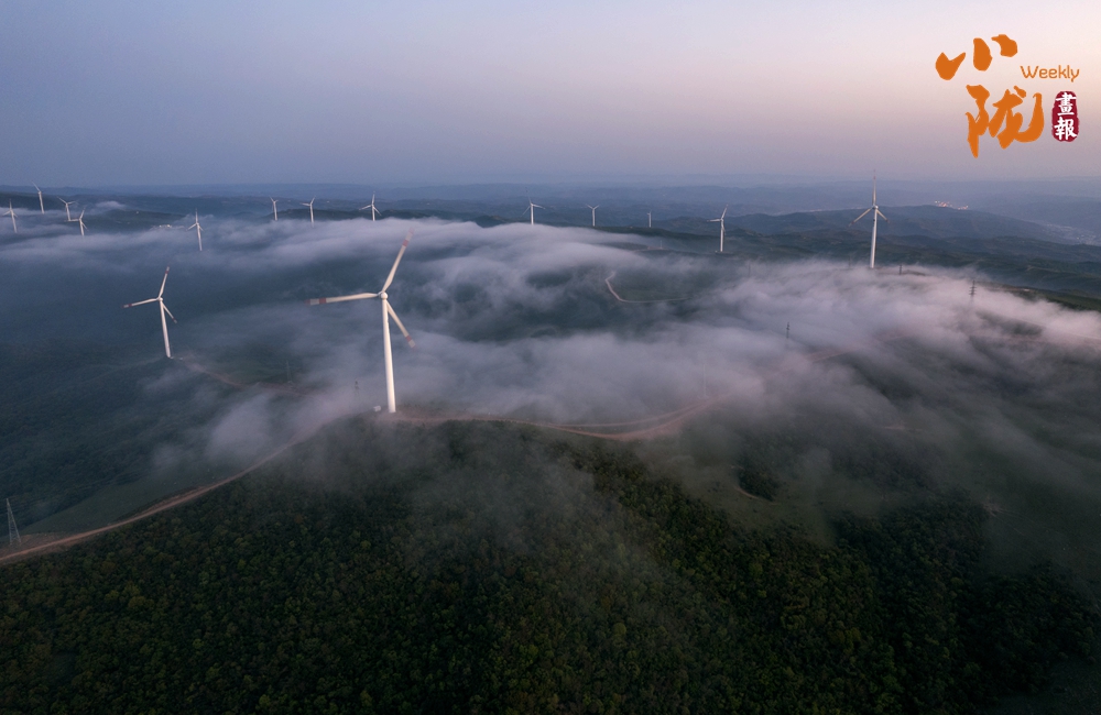 風(fēng)車在云海中旋轉(zhuǎn),仿佛觸手可及,又似遙不可及。云海翻騰,風(fēng)車旋轉(zhuǎn),似乎與天空進行著一場無聲的交響樂。關(guān)山風(fēng)光大道,作為張家川縣境內(nèi)風(fēng)電新能源通道的拓建開發(fā)項目,已形成了一條綿延百里的關(guān)山觀光走廊。在這靜謐的山間,唯有風(fēng)車的轟鳴聲打破了沉寂,它與飄渺的云霧、巍峨的山嶺共同構(gòu)成了一幅絕美的畫卷。