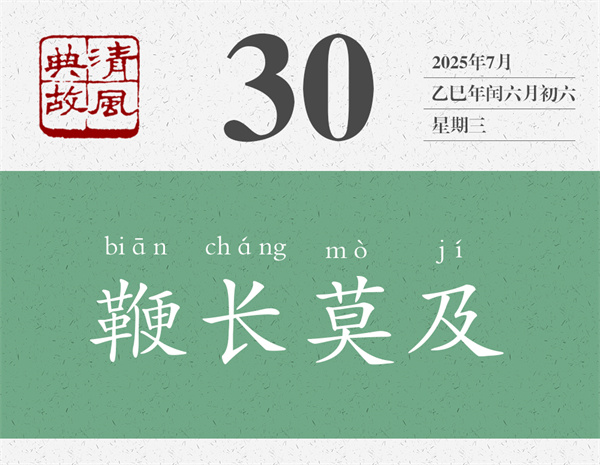 先古語,后民諺,伯宗的一番高能輸出,晉景公全無招架之功,只好打消了出兵救宋的念頭。“雖鞭之長,不及馬腹”的意思是,鞭子再長,也不能打在馬肚子上。不是因為鞭子觸及不到馬肚子,而是因為馬肚子不是鞭子該打的地方。后世則以“鞭長莫及”為典,說明鞭子雖然長,但還是打不到想打的地方,比喻因為距離太遠,而無能為力,或者因為實力不足,不能想得太遠。