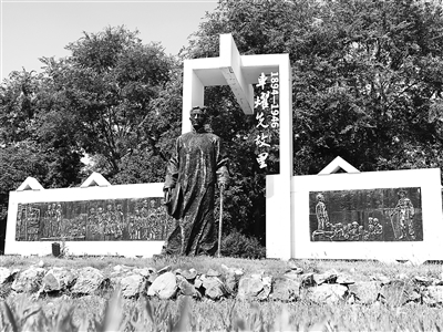 四川省成都市大邑縣悅來(lái)鎮(zhèn)的車(chē)耀先烈士塑像。吳蓮 攝