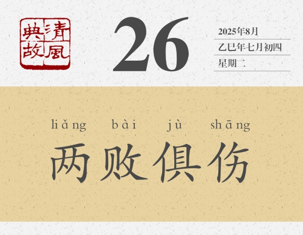 講完這個(gè)故事,陳軫言歸正傳,對秦惠王說:“今韓魏相攻,期年不解,是必大國傷,小國亡,從傷而伐之,一舉必有兩實(shí)。此猶莊子刺虎之類也。”秦惠王聽從了陳軫的建議,后來“大國果傷,小國亡,秦興兵而伐,大克之”。后世即以“兩敗俱傷”為典,比喻爭斗雙方都會(huì)受到損失,誰也得不到好處,也用來形容毫無意義的爭斗?!缎挛宕?bull;宦者傳論》:“雖有圣智,不能與謀。謀之而不可為,為之而不可成。至其甚,則俱傷而兩敗。”