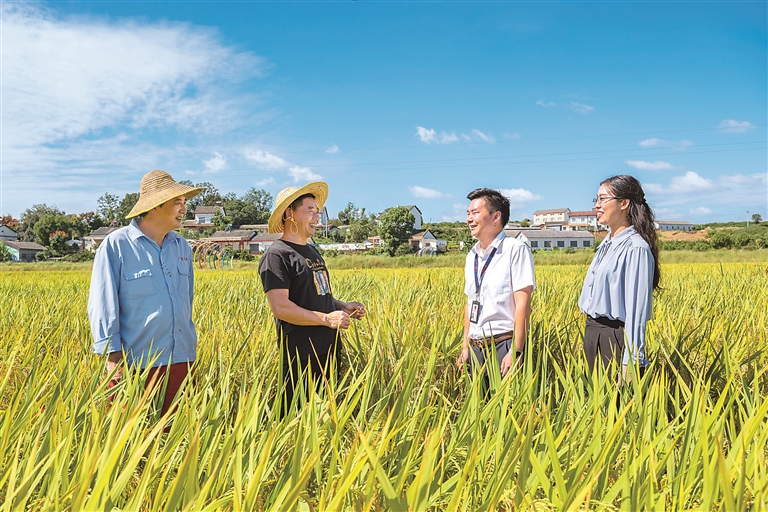 湖北省宜昌市夷陵區(qū)紀委監(jiān)委緊盯惠農(nóng)政策落實、涉農(nóng)補助資金發(fā)放、糧食購銷等關(guān)鍵環(huán)節(jié),組織紀檢監(jiān)察干部深入農(nóng)民專業(yè)合作社、田間地頭等秋糧生產(chǎn)一線開展監(jiān)督,確保顆粒歸倉。圖為該區(qū)紀檢監(jiān)察干部在鴉鵲嶺鎮(zhèn)鳳凰觀村了解相關(guān)情況。聶爽 攝