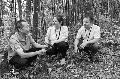 福建省龍巖市紀委監(jiān)委將深化集體林權(quán)制度改革作為政治監(jiān)督重要內(nèi)容,不斷夯實高質(zhì)量發(fā)展底色。圖為該市武平縣紀檢監(jiān)察干部在萬安鎮(zhèn)捷文村林下靈芝種植基地了解有關(guān)情況。曹建橋 攝