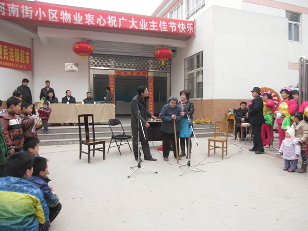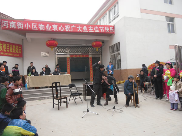 (信息員:李建華)農(nóng)歷正月十三(2月4日),河南街小區(qū)鑼鼓喧天,彩旗招展,熱鬧非凡,呈現(xiàn)出一片祥和的節(jié)日氣氛。 上午10時聯(lián)歡會準時開演,小區(qū)業(yè)主自編自演的腰鼓舞、扇子舞、拉開了這次活動的序幕,他們以優(yōu)美、歡暢的舞姿,以矯健穩(wěn)定的舞步,揮舞著手中的彩帶與鼓錘,生龍活虎,時伏時起。精彩的表演,贏得了在場觀眾的陣陣掌聲,尤其是小品《遲到的紅梅》將聯(lián)誼會逐漸推向了高潮,詼諧幽默地方話臺詞、真情再現(xiàn)的感情留露,深深的感染著在場的每一位觀眾。同時也讓我們清醒的認識到,尊老愛幼的傳統(tǒng)美德,無論在什么時候,我們都應該繼承與發(fā)揚,理解與關(guān)愛自己身邊的長輩與老人。 通過這次聯(lián)誼會,不但拉近與改善了物業(yè)與業(yè)主的關(guān)系,也活躍了小區(qū)精神文化生活,同時也體現(xiàn)了物業(yè)與小區(qū)業(yè)主都是一家人的魚水之情,鼓舞了物業(yè)辦全體員工繼續(xù)搞好小區(qū)各項工作的信心。