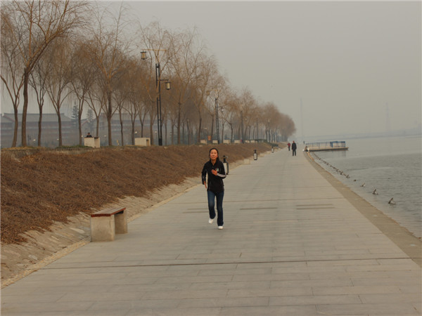 拔河比賽后全體隊(duì)員稍事調(diào)整后,如數(shù)參加了長跑比賽,賽程設(shè)置往返于統(tǒng)一大樓對應(yīng)的咸陽湖畔到二號(hào)橋。裁判一聲令下,隊(duì)員們爭先恐后的離開了起跑線,經(jīng)過四十分鐘左右的角逐,最終男子組張耀成、王威龍、董放放分獲前三名,女子組由李燕君、王幸、史秀娥奪得前三。