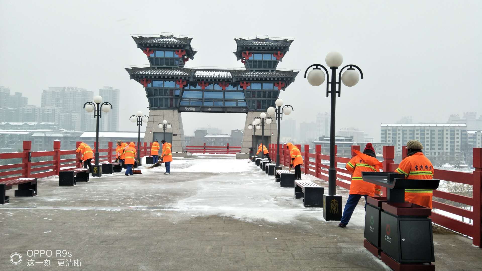 1月25日上午,為了確保道路暢通和業(yè)主的出行安全,城投物業(yè)全體員工冒著凜冽的寒風(fēng),在總經(jīng)理趙明海的帶領(lǐng)下,兵分三路,對古渡廊橋、小區(qū)主干道、包抓路段積雪進行清除。