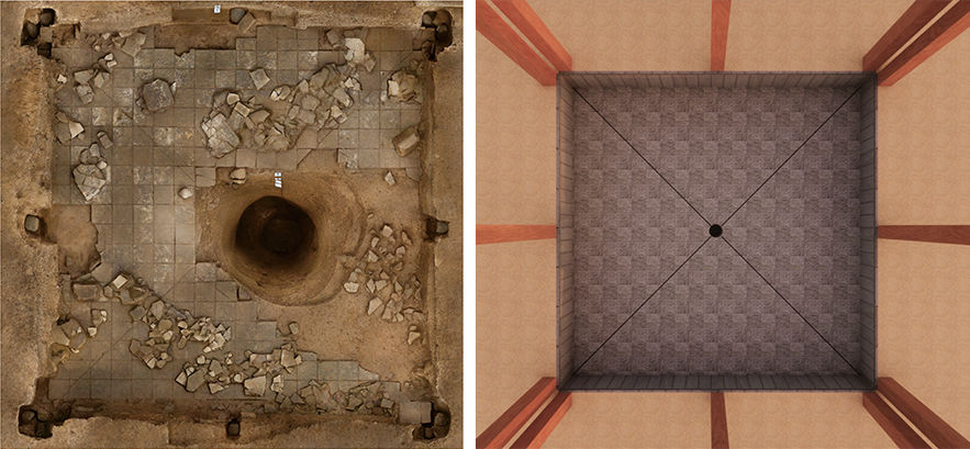 “這個方形空間邊長6.5米,地面鋪了表面光滑的素面地磚,四壁貼壁磚并用鐵釘固定,地磚和壁磚縫都采用了高超的填縫技術(shù)。底部還埋有一根陶水管道,種種跡象表明這是一處蓄水裝置。”侯紅偉說。