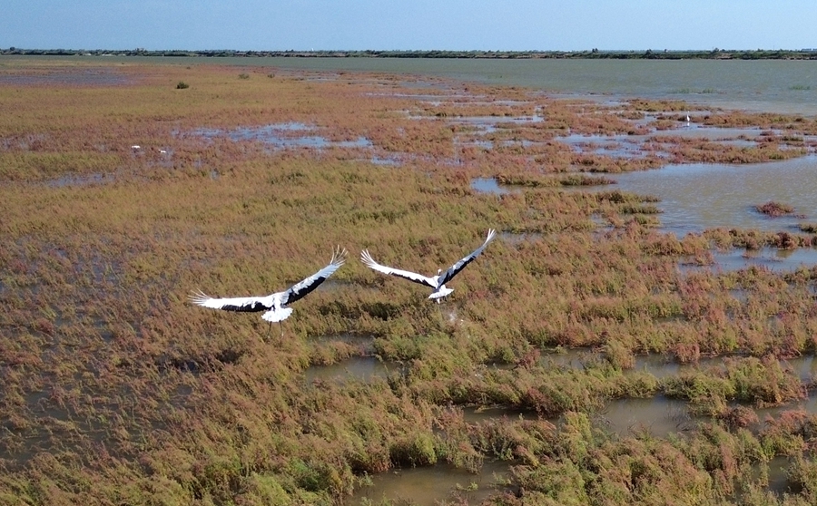 我們這里是中國東方白鸛之鄉(xiāng)、黑嘴鷗繁殖地,去年以來還新發(fā)現(xiàn)了火烈鳥、白鵜鶘、勺嘴鷸。”當(dāng)?shù)刎?fù)責(zé)同志介紹,這些年通過退耕還濕、退養(yǎng)還灘,推進(jìn)濕地修復(fù),生態(tài)環(huán)境越來越好。