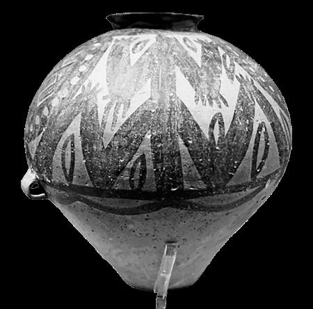 馬家窯文化最為常見,也最引人矚目的便是其精美絕倫、絢麗多彩的彩陶。流暢的平行線、優(yōu)美的弧線,靈動的水波、躍動的漩渦,鋒利的鋸齒、規(guī)整的網(wǎng)格、簡明的十字,游動的魚、跳躍的蛙、飛翔的鳥、栩栩如生的人面……筆鋒所至,宛如一幅幅圖畫,意趣生動。馬家窯文化彩陶的圖案從構圖到畫工,無不顯示出馬家窯人的精巧構思、嫻熟手法,以及對生活的仔細觀察和真摯熱愛。有研究者認為,馬家窯彩陶是史前時期大眾藝術最完美的表達。的確,馬家窯文化彩陶在延續(xù)時長、分布范圍、絕對數(shù)量、相對比例、精美程度等多個方面,均達到了前所未有的高度,是中國史前彩陶的集大成者,堪稱5000年前盛開在黃土高原上的“玫瑰”。