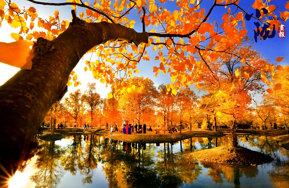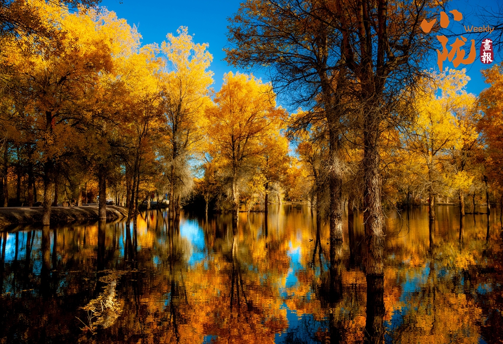 碧波蕩漾的金波湖倒映著胡楊,形成水中有林、林中有水的絕美畫面。游人如織,小橋流水,碧波蕩漾,白鵝嬉戲,若不是周邊金黃色的胡楊提醒,會讓人誤以為來到了江南水鄉(xiāng)。