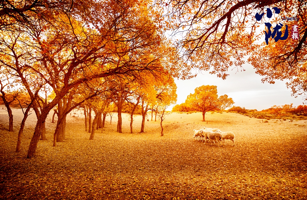 當秋風吹過金黃的胡楊樹葉,整片戈壁便成了被陽光熔化的鎏金海洋,輝煌而凝重。這些古老的生命已經(jīng)在這片土地上存活了數(shù)千年,它們以“生千年不死、死千年不倒、倒千年不朽”的姿態(tài)站立成永恒的風骨。