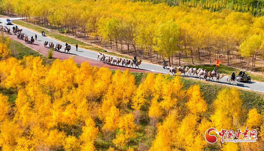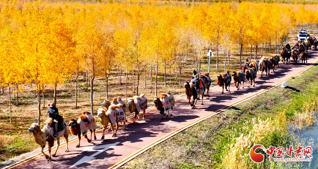 金秋十月,張掖市甘州區(qū)黑河林場萬畝胡楊林迎來流金季節(jié)。10月15日,一支駝隊(duì)行進(jìn)其間,領(lǐng)略這最美的時(shí)光。這片昔日亂石林立、滿目瘡痍的黑河亂石灘,如今已成為6萬畝的城市森林,游人、駝隊(duì)行進(jìn)其中,與金色林海共同構(gòu)成了一幅動(dòng)人的生態(tài)畫卷。