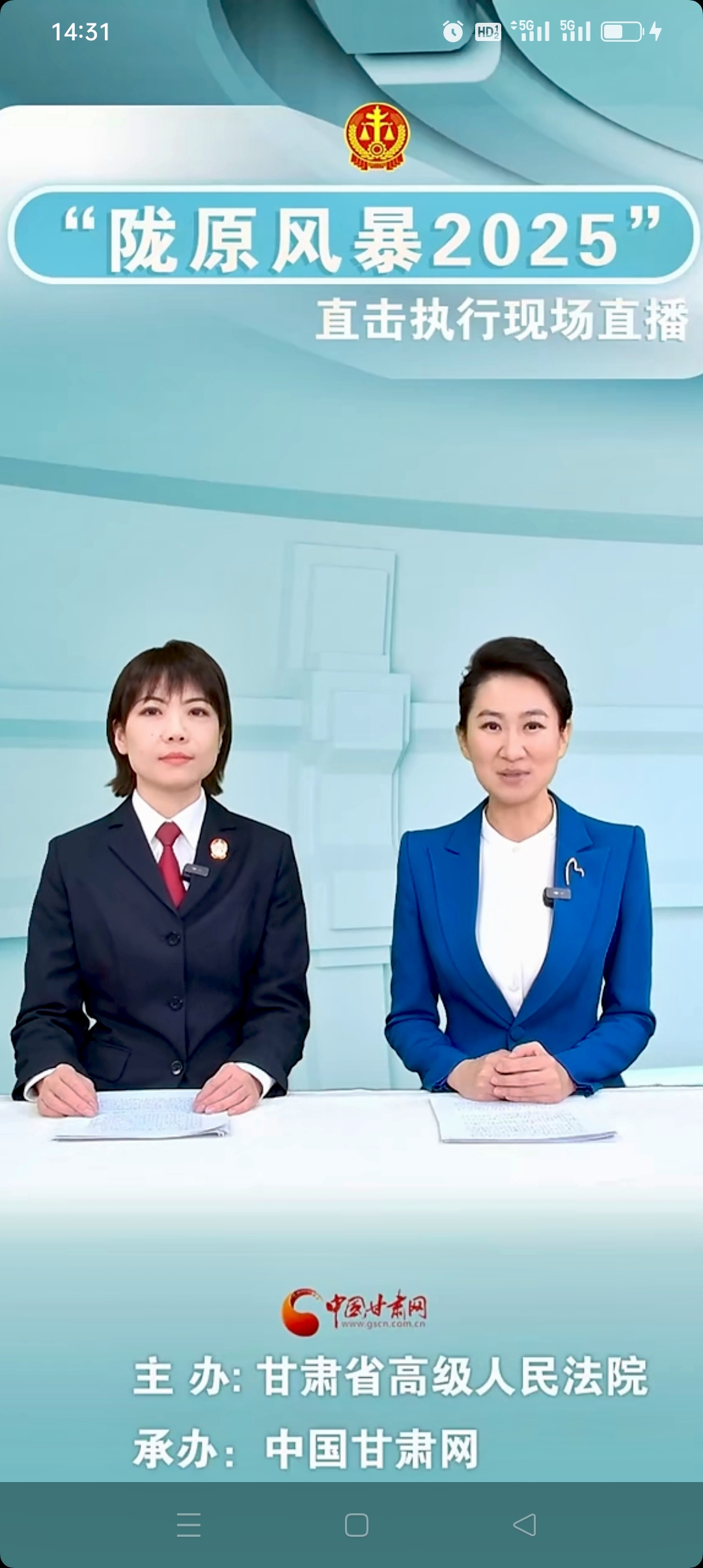 11月20日,由甘肅省高級人民法院主辦,中國甘肅網(wǎng)、甘肅衛(wèi)視承辦的“隴原風暴2025”直擊執(zhí)行現(xiàn)場直播走進隴南徽縣人民法院。