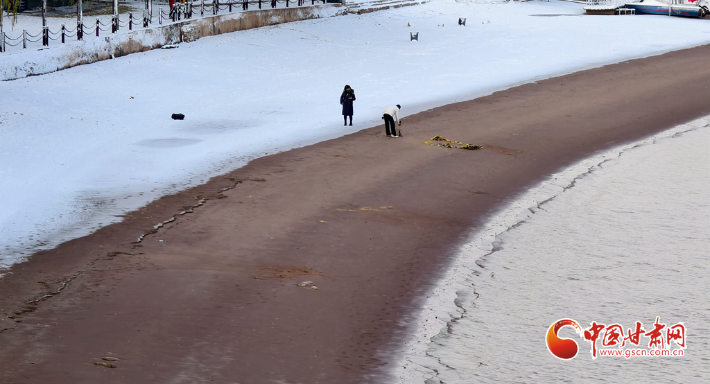 黃河邊,平日熙攘的步道鋪上了一層厚厚的雪毯,踩上去“咯吱咯吱”作響。遠(yuǎn)處的金城關(guān)在白雪的映襯下,古樸的韻味愈發(fā)濃厚。城墻與白雪,歷史與自然,就這樣和諧地融為一體。河邊的樹木,枝葉被雪壓彎,宛如大自然精心雕琢的藝術(shù)品。