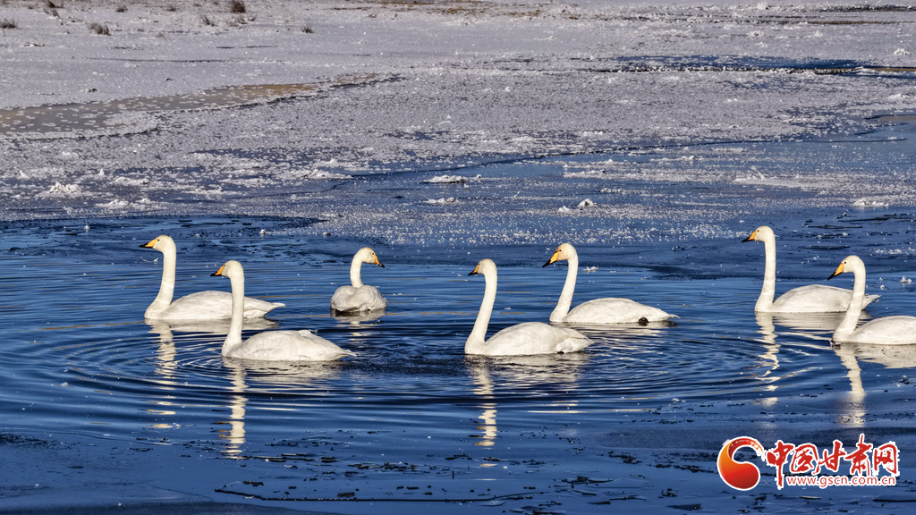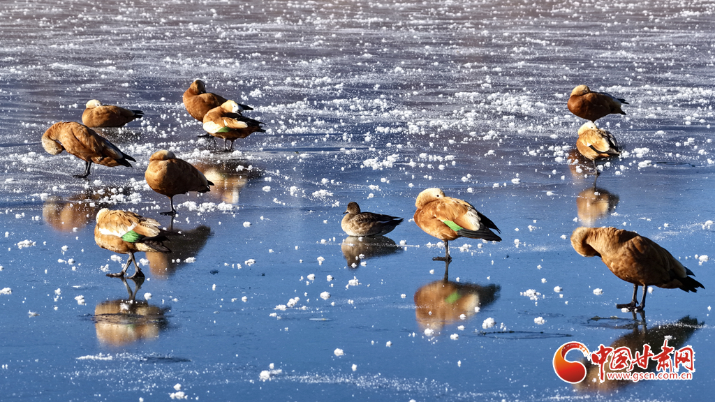 11月18日,初冬的甘肅山丹馬場鸞鳥湖濕地上,赤麻鴨、大天鵝、大白鷺三種珍稀鳥類悠然共處。它們或于冰面踱步,或在湖中游弋,或于淺灘佇立,共同構(gòu)成了濕地生態(tài)持續(xù)向好的生動圖景。