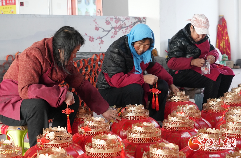 1月13日,莊浪縣宮燈產(chǎn)業(yè)園內(nèi),工人們正忙著制作各式燈籠。隨著春節(jié)臨近,燈籠訂單大幅增加,當(dāng)?shù)厣a(chǎn)企業(yè)正加班加點(diǎn),趕制供應(yīng)節(jié)日市場(chǎng)的大紅燈籠。目前主要生產(chǎn)紅植絨燈籠、仿羊皮燈籠、七彩走馬轉(zhuǎn)燈、鐵口緞面燈籠等二十多個(gè)品種,產(chǎn)品暢銷(xiāo)甘肅、陜西、四川、寧夏、青海等多個(gè)省區(qū)。