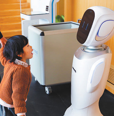 小讀者與館內(nèi)的機(jī)器人交流。闕明芬 攝(人民視覺)