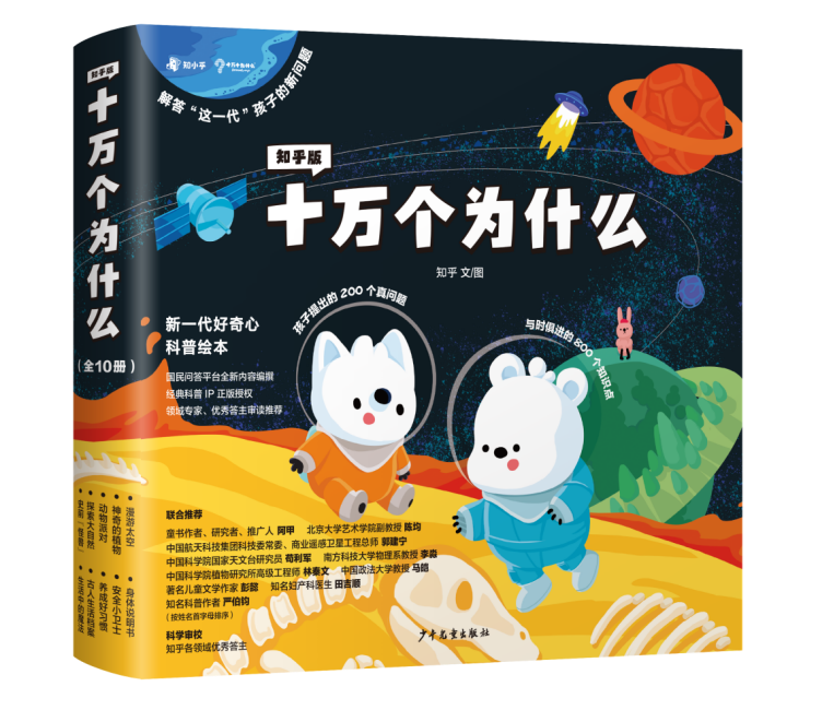 不是所有的科普讀物,都能叫《十萬個為什么》。1961年至今,《十萬個為什么》累計發(fā)行量近2億冊,是至今仍未被超越的現(xiàn)象級科普圖書。這套書在普及和傳播科學(xué)知識方面,發(fā)揮了非常積極的作用,影響了中國幾代青少年,堪稱是新中國影響力最大的青少年科學(xué)啟蒙讀物。作為國民級科普經(jīng)典,《十萬個為什么》誕生至今已經(jīng)60多年。盡管已經(jīng)有了之前版本的《十萬個為什么》,但是時代是不斷進步的,特別是進入數(shù)碼時代以后,孩子們比以往的所有時代,擁有著更多的信息和知識,腦袋瓜里也萌發(fā)著更新的問題和疑惑。他們發(fā)出的越來越多“超綱”問題,是以前的課本、科普書上沒有的,也讓父母們經(jīng)常面對“不知如何作答”的情況。新的“為什么”,需要新的解答。在少兒經(jīng)典科普《十萬個為什么》出版60周年之際,知乎攜手上海少年兒童出版社,收集當(dāng)代孩子的真問題,邀請各領(lǐng)域機構(gòu)和專家為孩子們寫下新答案,推出了全新的知乎版《十萬個為什么》,盡量讓孩子們的問題都有答案。