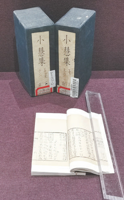 中國(guó)非物質(zhì)文化遺產(chǎn)館展出的清代刻本《小慧集》,其中用工尺譜記錄的“鮮花調(diào)”是民歌《茉莉花》最早的曲譜之一。 記者 周飛亞攝