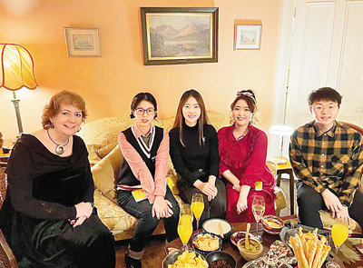 到愛爾蘭人家中做客、共度圣誕節(jié),對(duì)張靜瑄來(lái)說(shuō)是新鮮的體驗(yàn)。“那天晚上,我嘗到了許多圣誕節(jié)的特色美食,比如烤火雞、布丁等,我們幾名中國(guó)學(xué)生帶去了餃子,和老爺爺、老奶奶一同分享。席間,我們聊到春節(jié)和圣誕節(jié)的慶祝方式、對(duì)東西方家庭的意義等,這讓我切身體會(huì)到了不同國(guó)家的文化差異,也拓展了我的認(rèn)知,是我難忘的珍貴回憶。”周姝蕓
