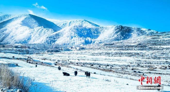 資料圖:初冬時節(jié),蘭州市榆中縣馬坡鄉(xiāng)迎來降雪,一場冬雪過后,村莊田野沐浴在雪景中,藍天白雪下,似童話世界。張學江 攝