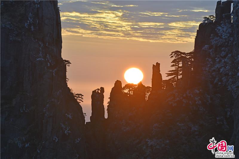 【點(diǎn)睛】新年伊始,黃山風(fēng)景區(qū)迎接今年的第一縷陽(yáng)光,在一片歡呼聲中太陽(yáng)跳出了地平線(xiàn)來(lái)到了黃山之巔。