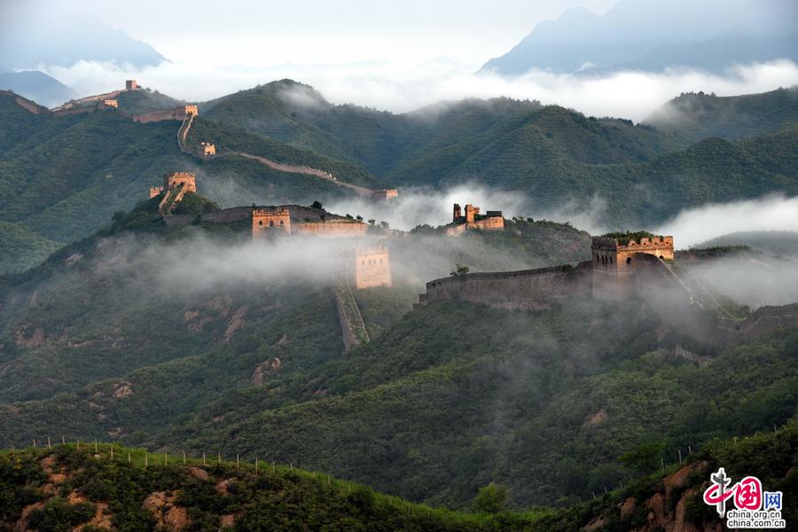 進(jìn)入夏季,金山嶺長(zhǎng)城出現(xiàn)云霧天氣多達(dá)二十多次,美輪美奐,令人神往。