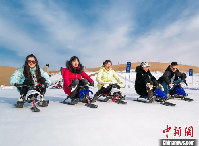 圖為新年伊始,游客在敦煌沙漠露營(yíng)基地享受滑雪的樂(lè)趣。張曉亮 攝