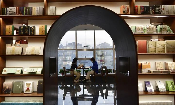 2022年4月21日,讀者在敦煌書(shū)局閱讀區(qū)看書(shū)。新華社記者 陳斌 攝