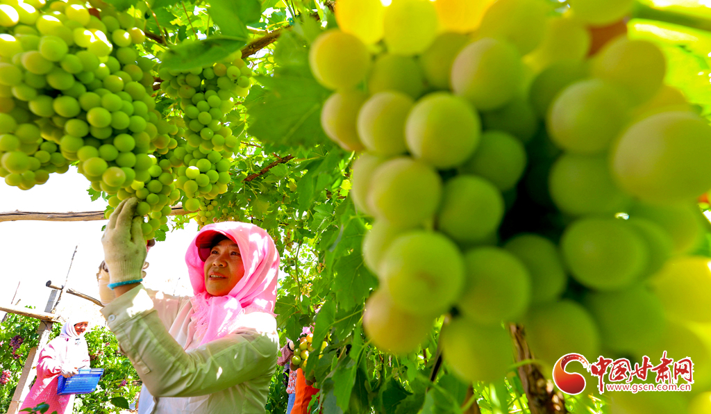 8月12日,甘肅省張掖市臨澤縣板橋鎮(zhèn)1.5萬畝葡萄喜獲豐收,進(jìn)入采摘期,吸引著周邊省市客商和游客前來觀賞、采摘與訂購。