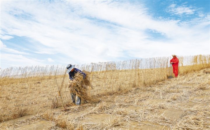 金塔:給風沙“設障” 為沙漠“穿衣”