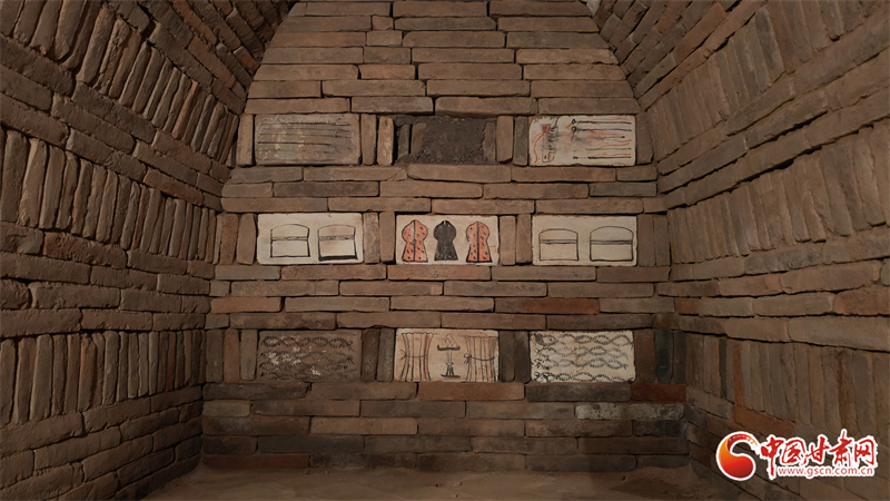 高臺縣魏晉壁畫墓,位于駱駝城東南5公里處的戈壁臺地,該墓曾兩次被盜,90年代后期由甘肅省文物考古研究所與高臺縣博物館實(shí)施搶救性清理。其中,100多塊彩繪畫像磚成為學(xué)界焦點(diǎn)。