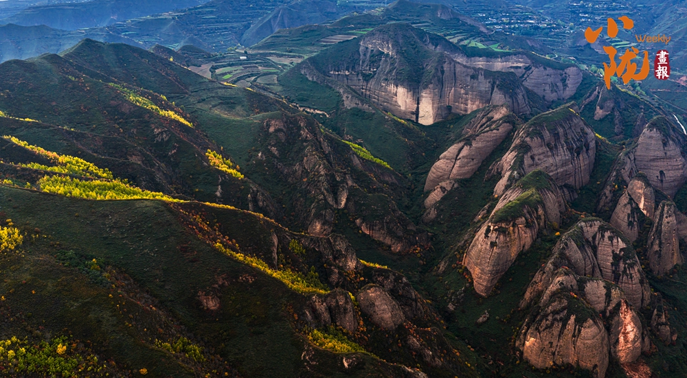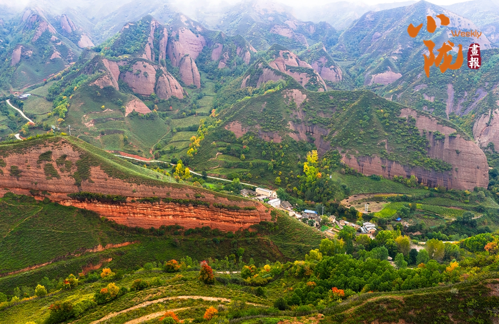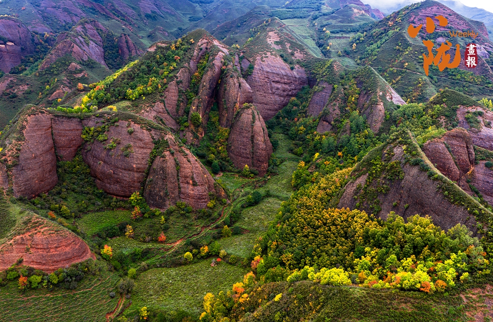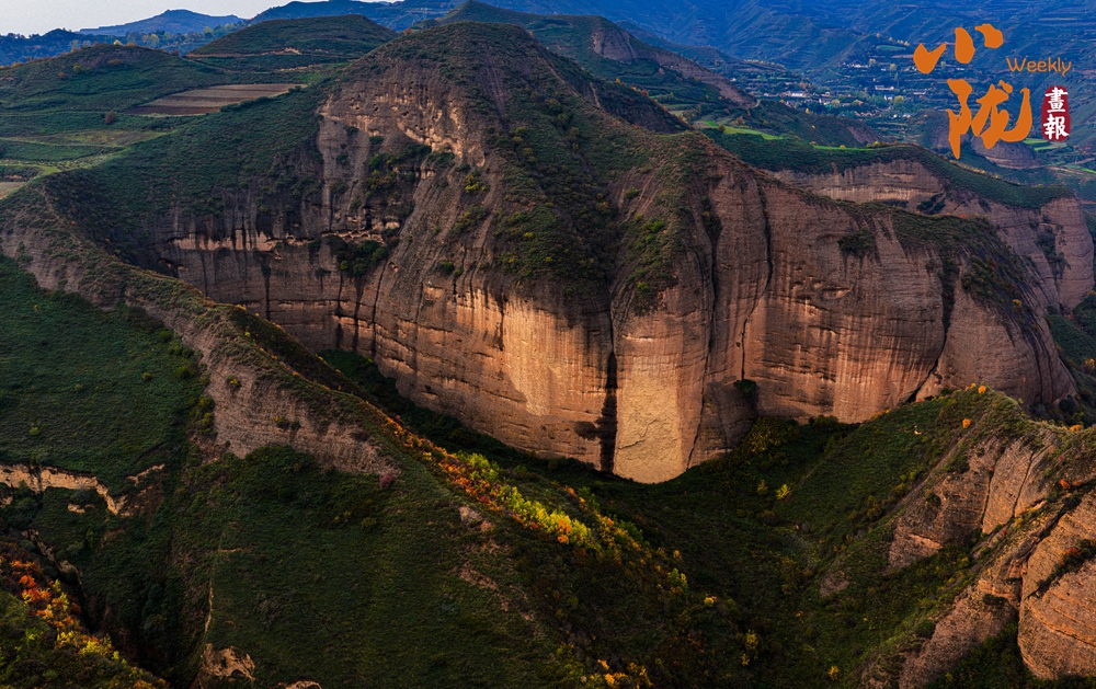 遠遠望去,山谷間、山巖上,一簇簇、一片片墨綠色草叢,將丹霞的紅、初冬的彩、山體的褐輕輕暈染,構成一幅美麗的冬日美景。