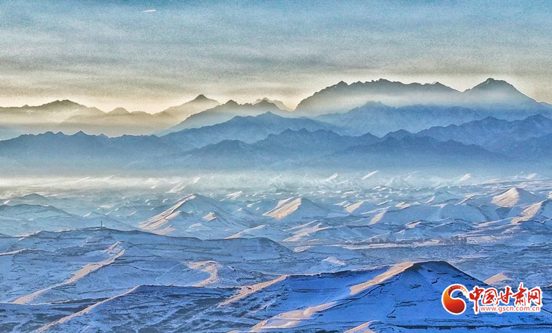 初冬時(shí)節(jié),位于張掖市民樂縣境內(nèi)的祁連山脈巍峨群鋒被一場大雪妝點(diǎn)的銀裝素裹,分外妖嬈,儼然一幅千里冰封萬里雪飄的北國風(fēng)光圖。