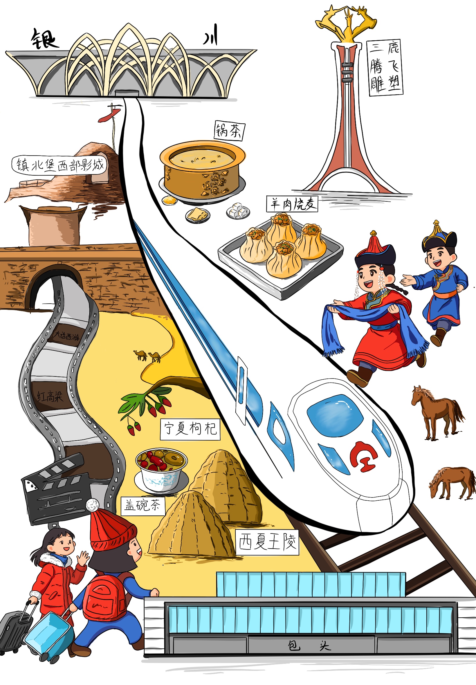 不負(fù)山河浩蕩,不負(fù)星河燦爛。這條貫穿西北的鋼鐵巨龍,不僅是一條便民出行的快捷線,更是助力發(fā)展的經(jīng)濟(jì)線、促進(jìn)交流的文化線。無論是由此帶來的沿線旅游、產(chǎn)業(yè)、就業(yè)的發(fā)展,還是鐵路企業(yè)自身建設(shè),都將呈現(xiàn)出勃勃生機(jī),為西北大地帶來更多的發(fā)展活力與無限可能。面向“十五五”,包銀高鐵必將推動(dòng)沿線經(jīng)濟(jì)社會(huì)發(fā)展駛?cè)?ldquo;快車道”,在新征程上續(xù)寫更輝煌的篇章。(文字:陳浩媛  漫畫:李雨晴,朱雪菲)
