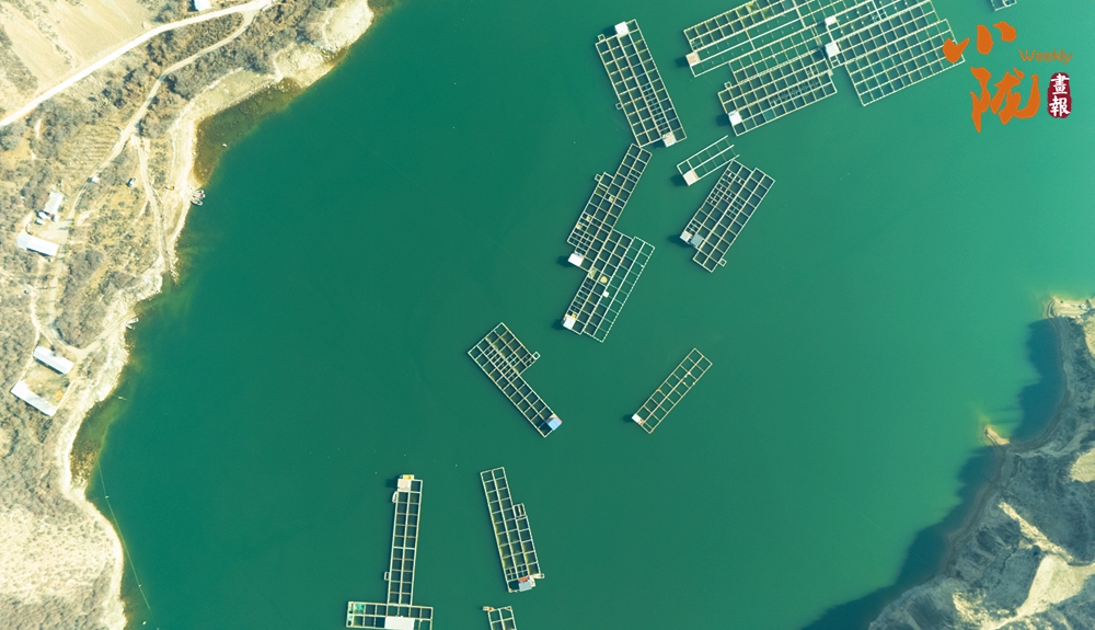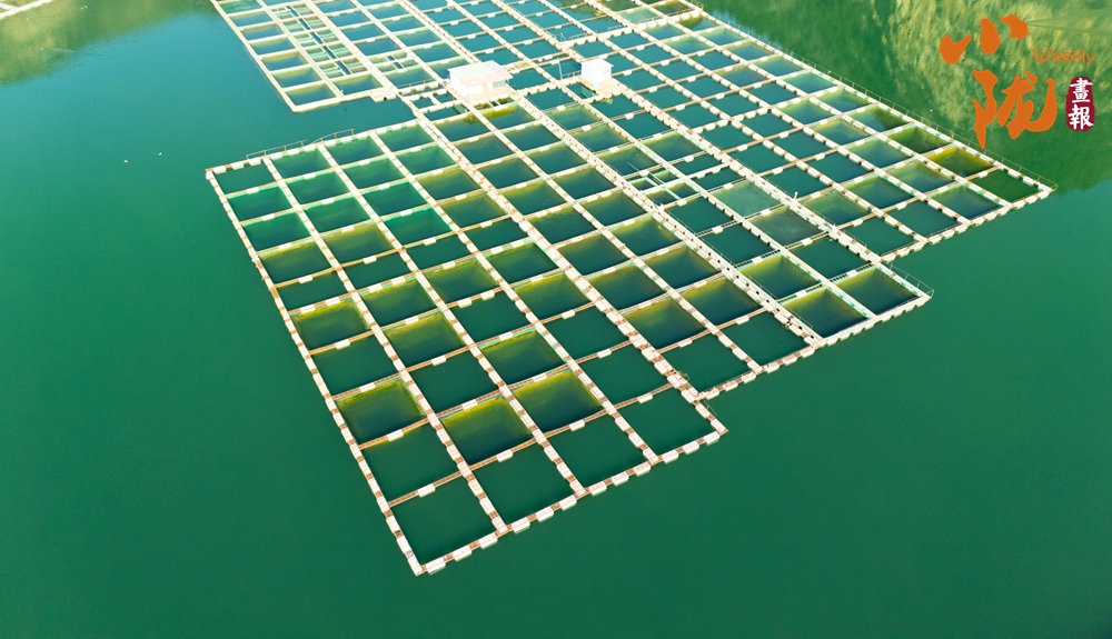 在這片湛藍(lán)的湖水中,一方方網(wǎng)箱靜靜地泊著,如同水上阡陌,將廣闊的湖面勾勒成豐饒的田園。